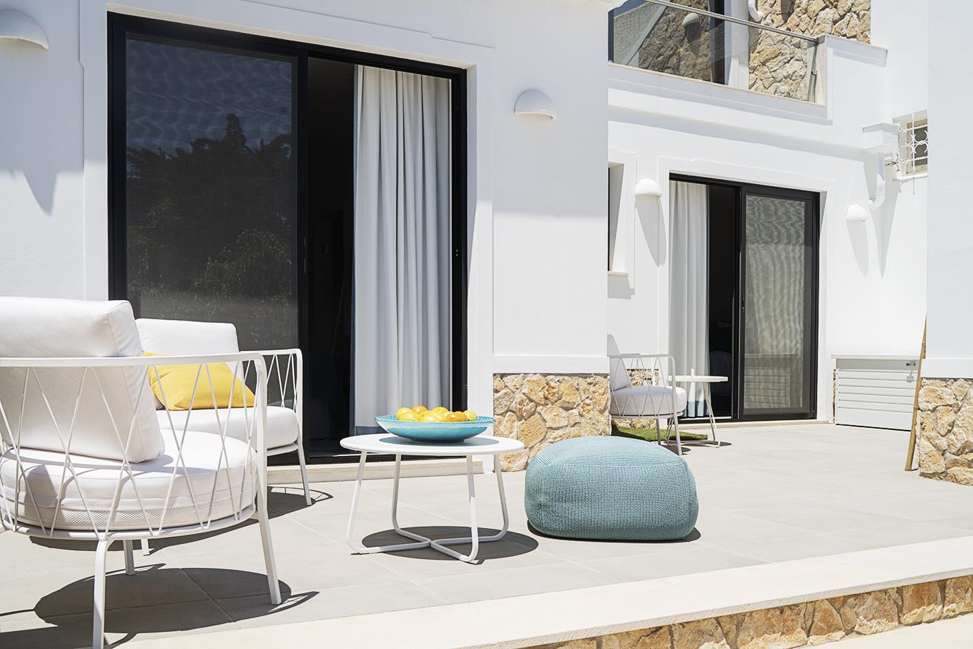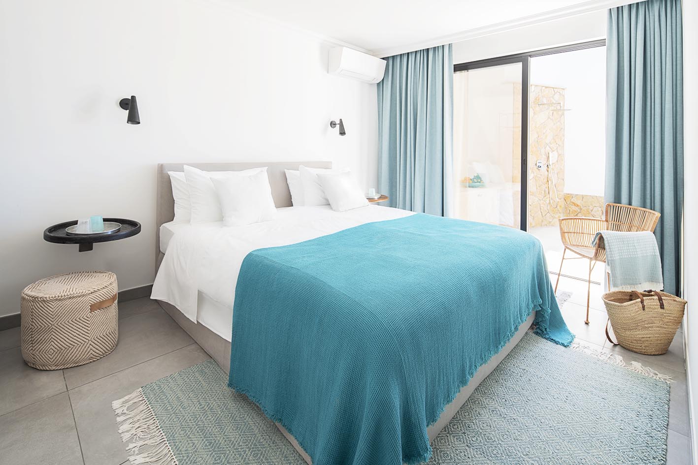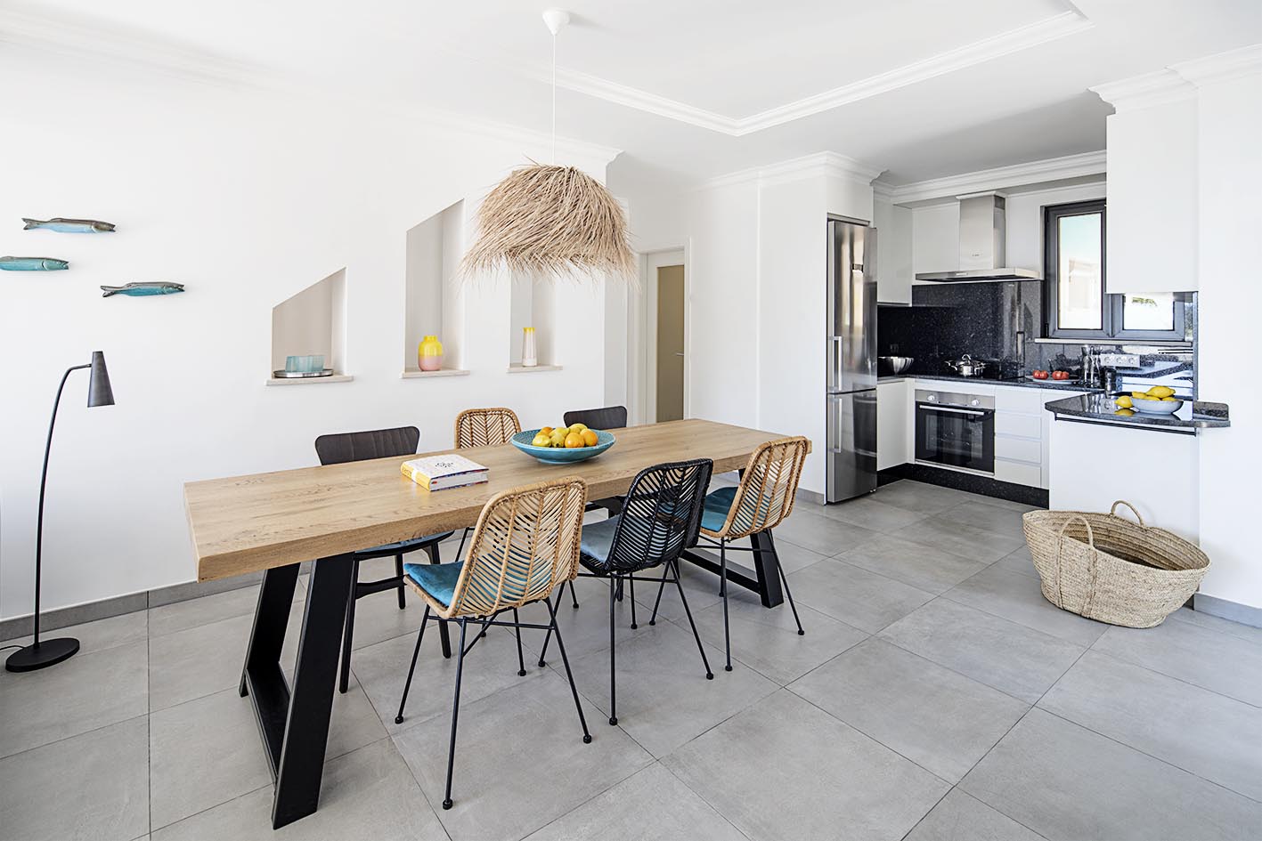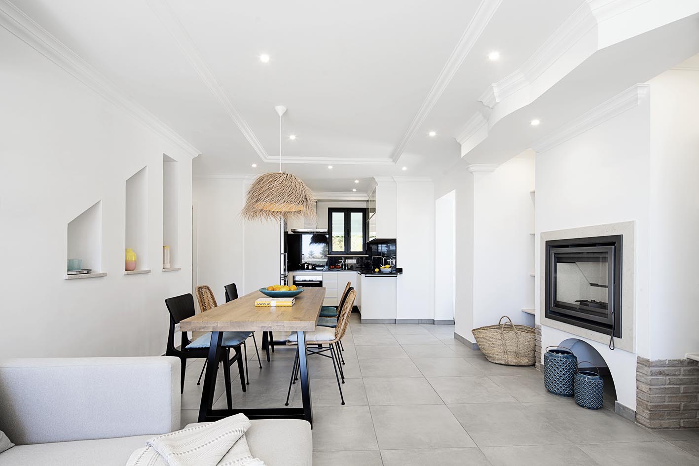 Casa Sol 3 ist ein liebevoll saniertes Reihenhaus in neu interpretiertem portugiesischen Stil. Der großzügige und elegante Wohn-Essbereich mit sehr gut ausgestatteter Einbauküche und Kamin trägt zu viel Komfort bei. Im Untergeschoss befinden sich separat und ruhig zwei charaktervolle Schlafzimmer. Akzente aus Türkis und Beige mit rustikalen Holzschränken, viel Leinen und sanften Stoffen kombiniert, ziehen sich hier durch das Konzept für die sevencollection Apartments in Carvoeiro.
